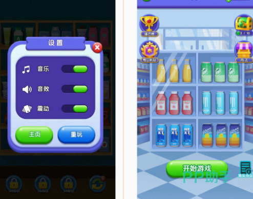 这款以生活中超市,或者是小卖部货柜摆放的物品,进行设计的消除游戏,你可看到超多的商品,无论是酒水、饮料还是食物等,大家都需要利用经典的匹配消除玩法进,行体验。由于每层货柜中的商品,可能都是不一样的,所以你必须要通过正确交换,与相邻的物品进行匹配,保证能消除的情况下,就可获得分数,还有诸多的障碍物以及道具,你都可享受充满着挑战性的游戏特色。