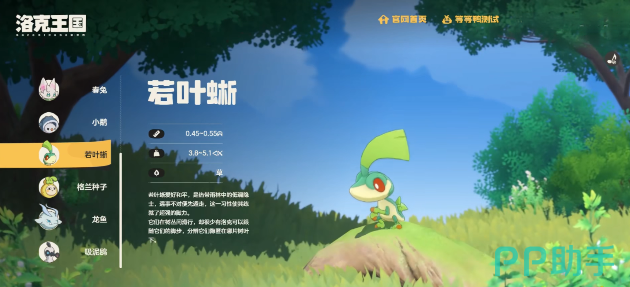 不知道玩家们有没有获得游戏二测的资格,游戏的二测马上就要开启了。在二测内容中玩家们又将能捕获很多可爱且有趣的精灵,这样的话精灵业态也会更加多样,让小伙伴们都在期待二测的开启。洛克王国世界若叶蜥怎么样,在游戏的热带雨林地图上生活着一些非常精致小巧的蜥蜴,它们有个很显著的特点就是头顶上有一片叶子,所以取名为若叶蜥。