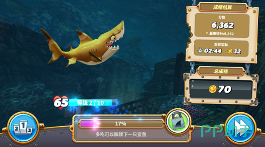 这款游戏引领着大家来到海底世界,在其中你可以控制着鲨鱼游动,吞吃那些比它身形更小的海底生物,它会慢慢变大,甚至蜕变为大白鲨,成为海内独一无二的霸主,你也会有极大的成就感。游戏里,海浪声、鲨鱼咀嚼食物的声音等,都是如此的逼真,给你强烈的代入感和真实感。