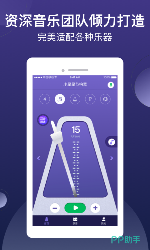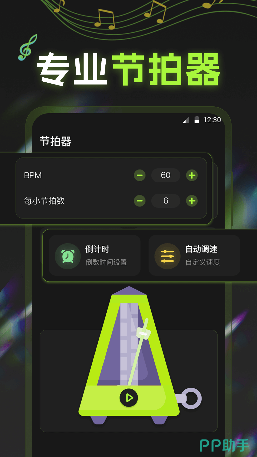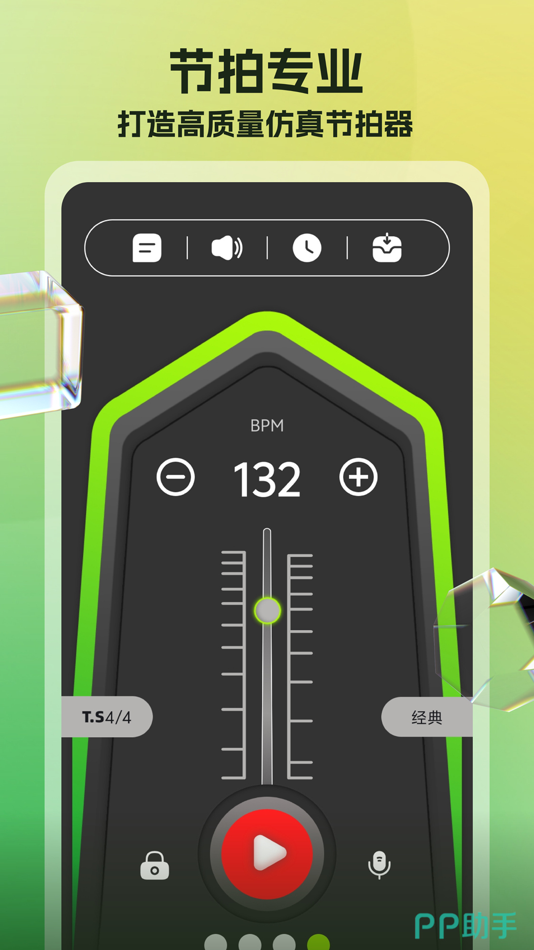 这是一款比较专业的节拍器,无论小伙伴们是在乐器练习方面,还是在一些比较正式专业的场合都是可以去用的,适合初学者,也很适合专业人士,让小伙伴们可以更加轻松的掌握音乐的节奏,从此喜欢上乐器。