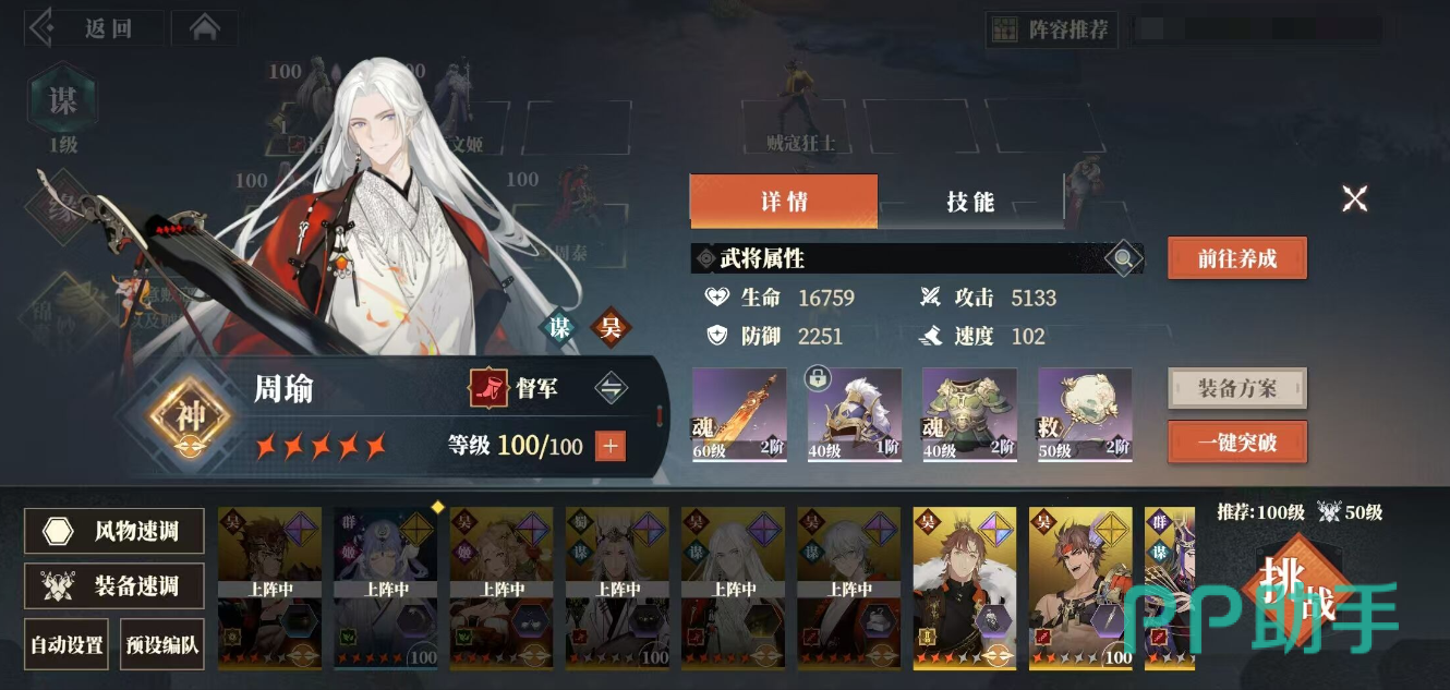 一个武将培养到这个阶段基本上可以说就是毕业了,剩余的就是捣腾装备了,获取更高品质和等级的装备,当然有套装效果是最好不过了。通常装备上有一个很大文字的就是有套装效果的。