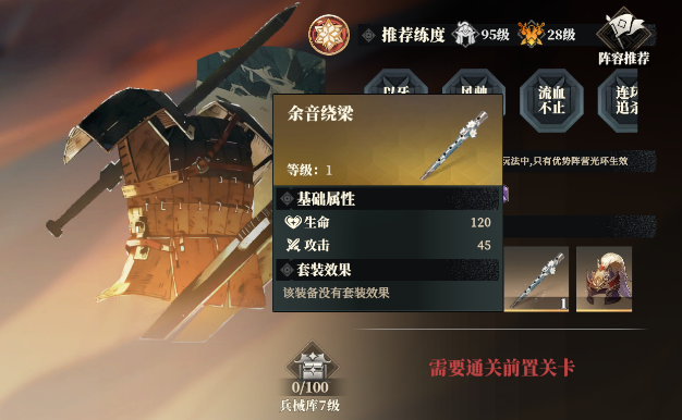 武器装备是在玩家解锁试炼中的兵械库后才能获得的,但是兵械库并不是那种可以反复刷的关卡,而是打完一层就到下一层,通关奖励会给到一些装备,因此高稀有度的装备在游戏前期是比较稀缺的。