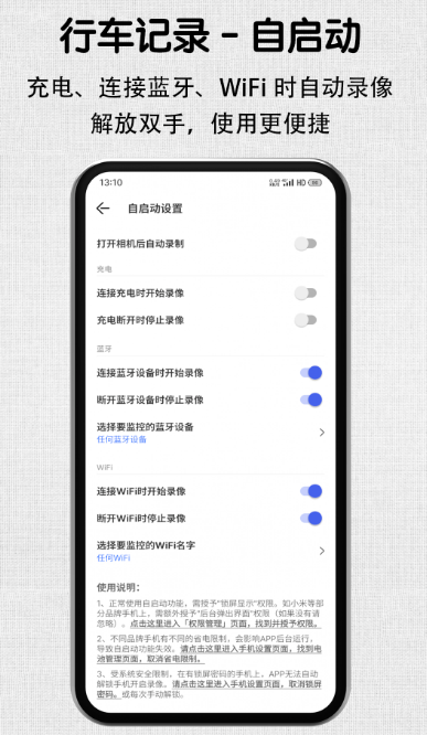 录制轻松简单又好玩的记录仪软件轻松记录沿途风景,让手机秒变记录仪。当前电子产品更新换代速度较快,如果你有闲置手机,无论像素怎样,无论cpu配置都可直接下载。完全免费纯净无广告,根据具体的空间内存进行设置,对于需要保留的视频可直接锁定,永不丢失。外出游玩时利用此app记录沿途的美景。