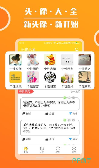 头像吧是一款专注于提供各类头像素材和配对功能的应用。它不仅提供了丰富的情侣头像资源,还支持头像自定义编辑。你可以选择上传自己和伴侣的照片,然后通过编辑工具添加文字、滤镜、贴纸等来打造个性化的情侣头像。头像吧还提供了方便的配对功能,通过输入你和伴侣的信息,应用将自动为你生成最佳的情侣头像组合,让你们的头像更加符合彼此之间的情感和默契。