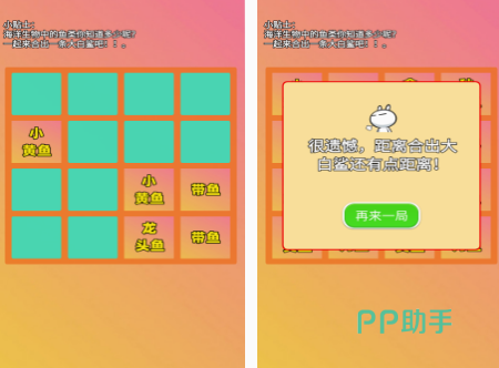 相对于融入了真实海洋环境的鲨鱼游戏,这款在画面风格设计,非常的与众不同,也是玩法有所区别的。能够从简单的小黄鱼,不断的利用合成的方式,成为大鲨鱼。而且游戏中除了小黄鱼,还有带鱼等,都利用的是文字显示出来,你需要通过点击里面相同的小鱼,就能不断的合成,最终成为大白鲨以后,大家就能完成任务。