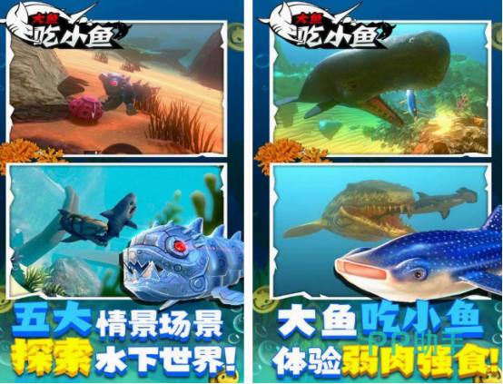 虽然这并不是一个食人鲨游戏,但却是能让你成为鲨鱼不断前进的,融入了大鱼吃小鱼这种玩法,与现实生活中海洋生物生存的法则,保持一致。需要不断的在海里面游行,面对其他人追捕的时候,也要及时的躲避,更能利用所获得的道具,帮助里面的鲨鱼游得更远,吃掉的鱼类更多。涵盖五大场景,你可在这里面自由探索。