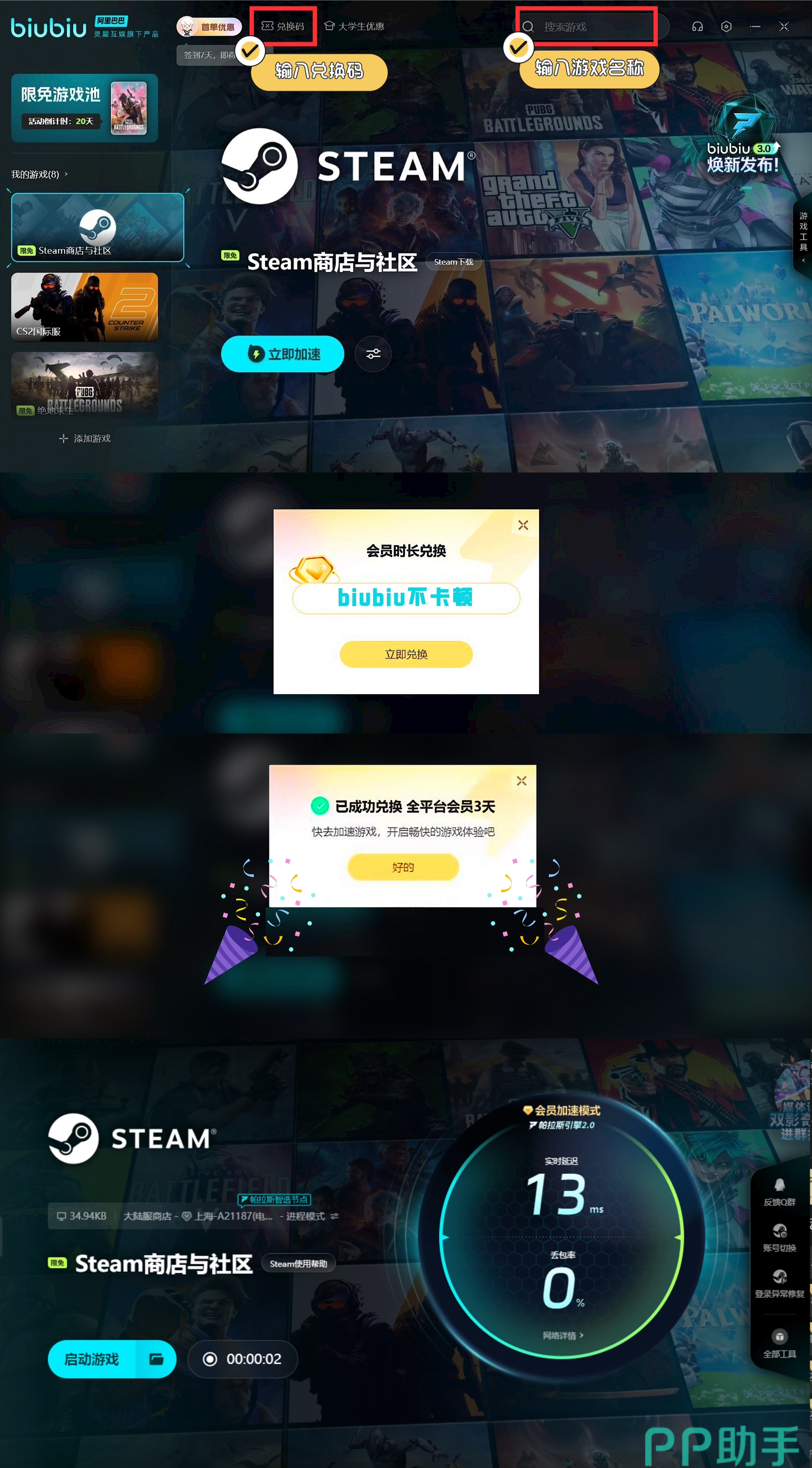 对于希望安装游戏的用户,可以直接点击上方链接跳转至biubiu应用端内,其中提供了一键直达的官网下载地址,让安装过程更加便捷。同时,推荐每位用户在自己的电脑上安装biubiu加速器,点击上方链接即可直接进行安装。新用户安装完成后,将直接获得三小时的体验时间,使用兑换码【biubiu不卡顿】还可以额外获得72小时的体验时间,确保玩家能享受到流畅的游戏体验。