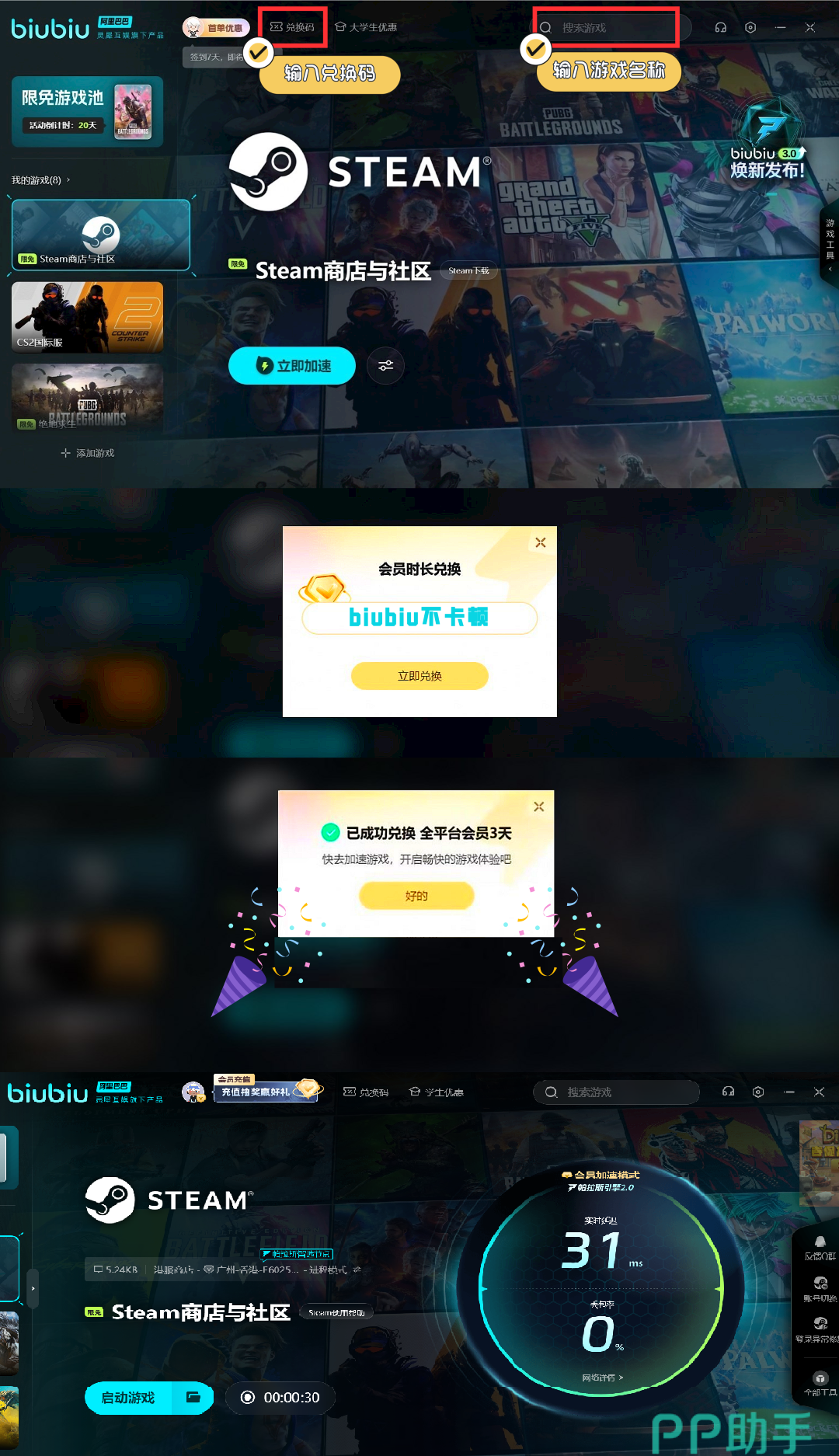biubiu加速器为新老玩家准备了三重福利:新用户注册即享3小时免费加速时长,输入兑换码【biubiu不卡顿】可再领3天免费加速,支持叠加使用,共计75小时;学生用户通过身份认证后,可解锁专属月卡优惠;此外biubiu加速器还有很多活动福利,大家下载好之后就可以看到了。