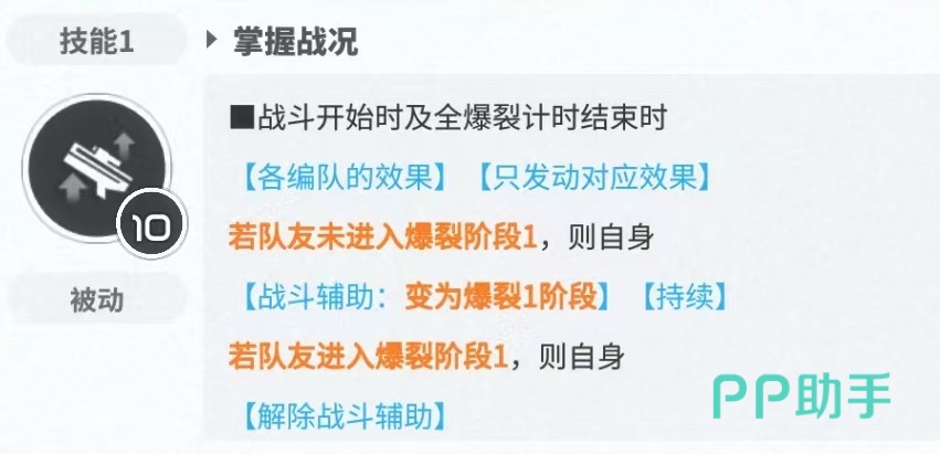 第1个被动技能使得拉毗可以根据队伍的需要,作为爆裂1或者是爆裂3来使用。在爆裂1时,该角色更像一个支援作用,有着较高的冷却缩减,还提供了伤害输出效果,可以在队伍中直接替代丽塔来使用,实现更快的爆裂循环,更高的队伍伤害和增加输出伤害效果。这样的机制在目前角色中是比较有特点的一个,也是很多新手玩家一开始不知道如何上手的原因。