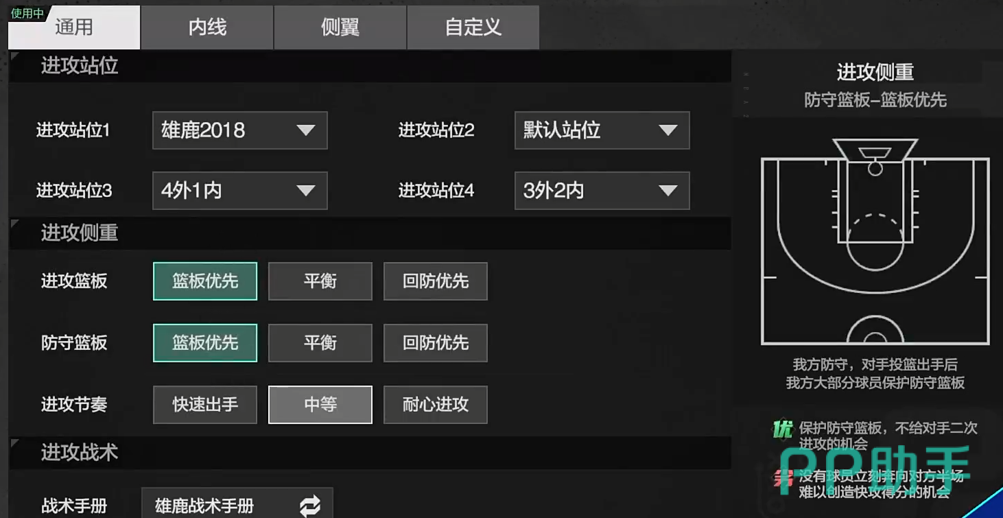 例如:湖人的詹姆斯、东契奇,太阳队的布克、杜兰特,独行侠的浓眉哥、欧文,凯尔特人的塔图姆、布朗,掘金的约基奇,雄鹿的字母哥,以及勇士的库里。普通玩家前期主要得分手段就是挡拆突破、挡拆顺下、给中锋的快攻。