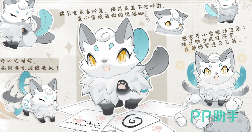 小雪狼有着不断晃动的尾巴和毛茸茸的身体,是夏露露村最忠诚的守护者,因为可爱,很多村民都十分喜欢,人气很高比风凛凛的形态更受欢迎。