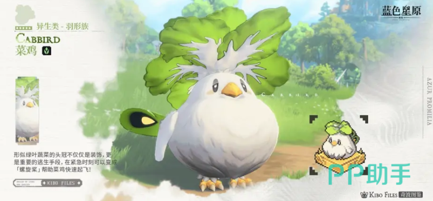 它的头上有着绿叶蔬菜的头冠,这不单单只是它的装饰,还是重要的逃生手段,在紧急时刻可以变成螺旋桨,帮助自身起飞。