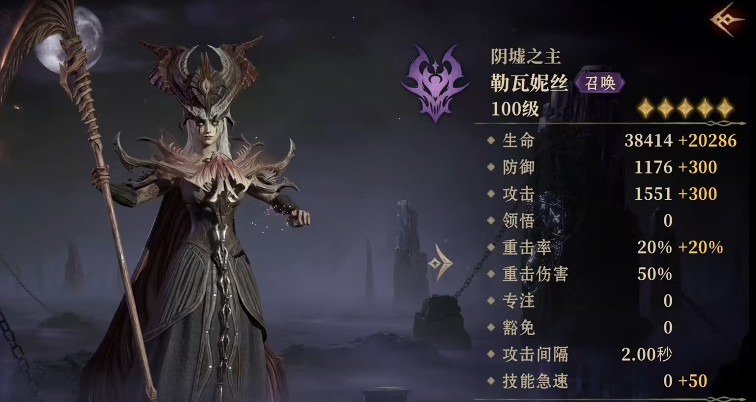 勒瓦妮丝成为T0层次当然源于自身的实力,这位黑龙公主战力极强,它能召唤出强悍的不死生物去与敌人战斗,被动使自身受到范围伤害减少,当场上有目标死亡时,就能获得龙血状态,持续时间无限。造成的伤害能无视敌方一定的防御力,是现在召唤流派的核心角色,通过汲取不死生物的力量,打出无可匹敌的暗蚀伤害。