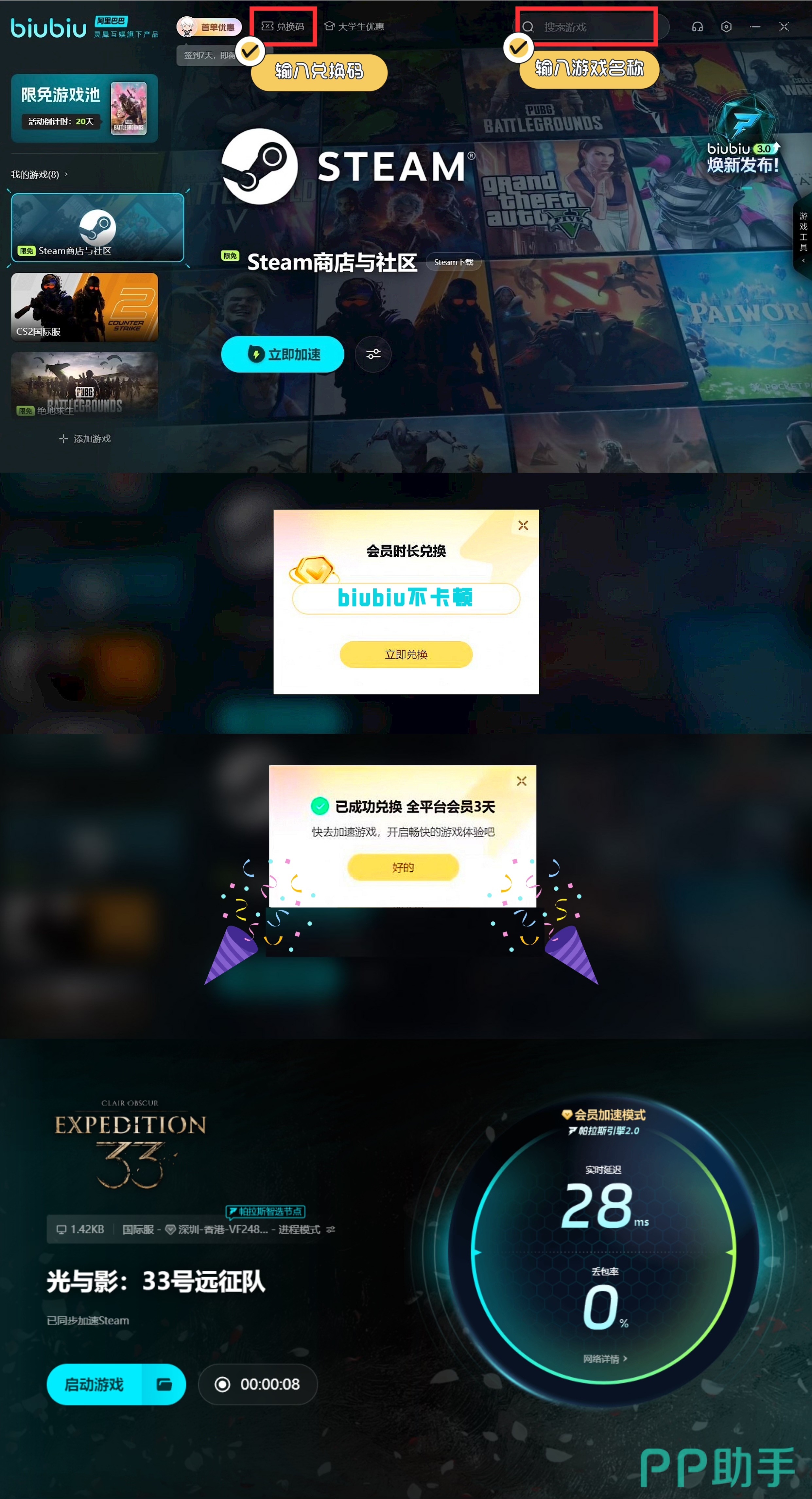 其次,推荐大家选择在半夜或者清晨等网络使用较少的时间段进行游戏应用的下载。因为在网络高峰时段,大量的用户同时在线可能会导致网络拥堵,进而影响到游戏下载的速度。为了获得更快的下载体验,尽量避开这些高峰时段。此外,使用加速器也是一个不错的选择,它可以帮助大家有效提升下载速度,并减少因网络延迟造成的卡顿现象。在这里,小编特别推荐大家使用biubiu加速器。对于biubiu加速器的新用户来说,有一个非常吸引人的优惠活动,新用户注册就可以获得3小时体验时间,并且借助兑换码【biubiu不卡顿】还可以额外获得72小时的免费使用时间,这样一来,大家就可以彻底告别延迟问题,享受超级快的下载效率!