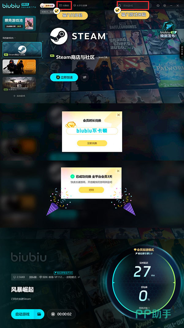 若是到时想要去解锁更多加速福利,还可主动去点击兑换,然后在其中输入【biubiu不卡顿】,如此一来所有平台用户均可顺利获得72h加速时长,更是无需在担心自己会有掉帧等方面的影响,游戏体验期间的效果也会更加的丝滑,像卡顿以及延迟等方面的问题都能得到很好的解决哦。