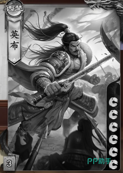 第四位角色英布,这是一位六血角色,该角色拥有摸牌技能和按牌加体力上限的技能。