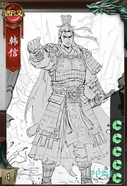 第八位角色韩信,这是一位五血角色,该角色拥有将任意卡牌设为埋伏打出让其它角色弃牌和锁定血量的效果。