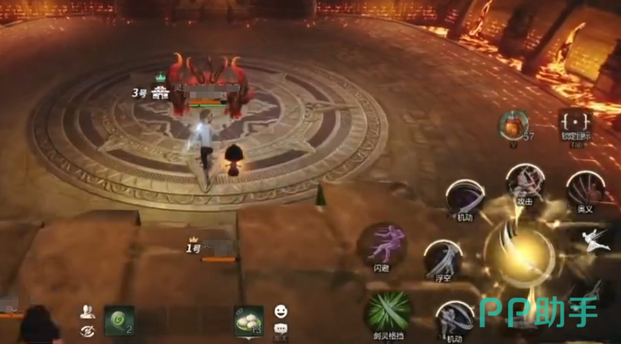 不过这时候他的头顶上会出现一个危字,就说明他正在处于愤怒并且攻击的状态。我们打完一套之后他就会后退,而且朝着前方不断用自己的嘴巴喷出直线火焰。那我们可以朝着他的身边继续攻击,因为他输出期间并不能被打断。