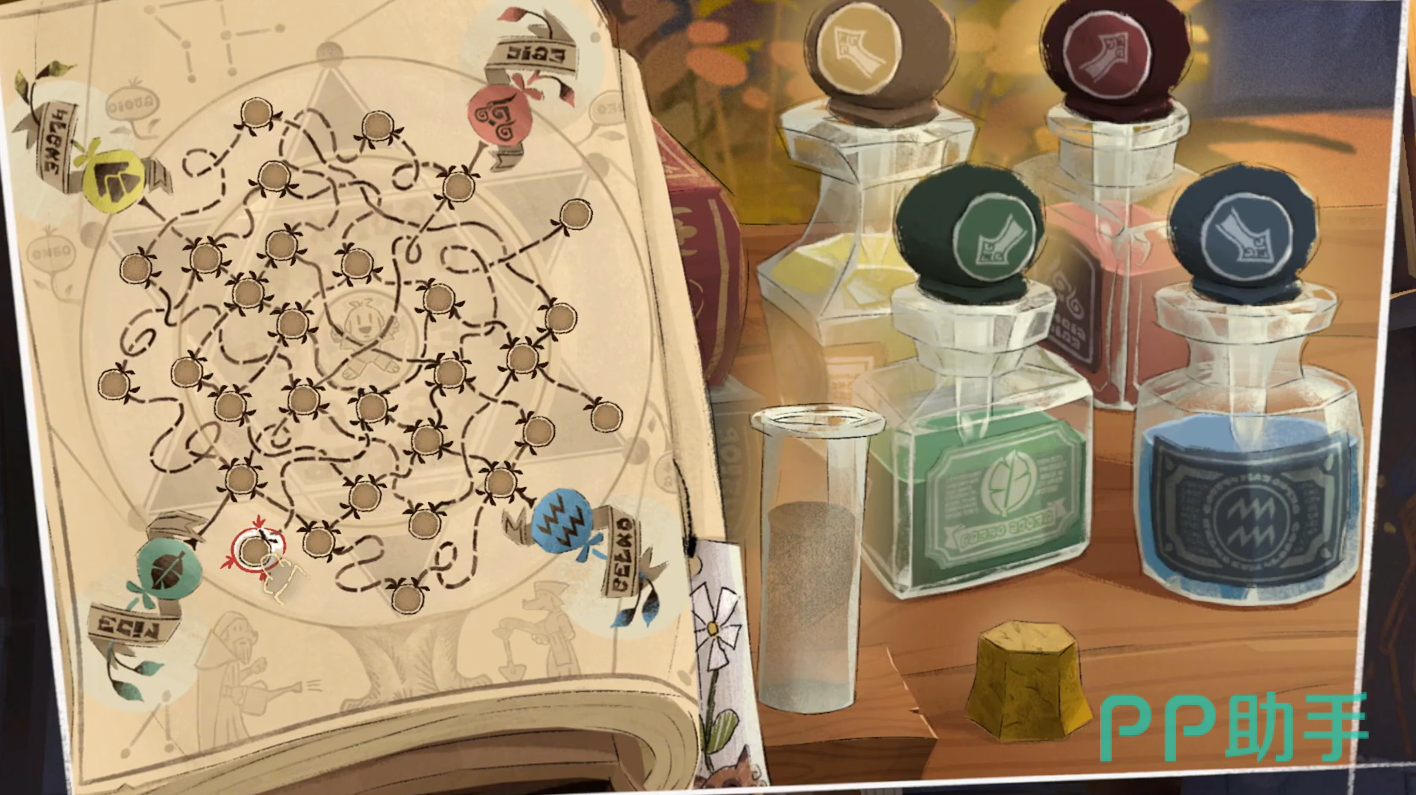 在这个章节后半段有一个非常难的解谜游戏,很多玩家都卡关在这里不知道如何推进,这里玩家只需要按照按照顺序加入一滴蓝色、三滴黄色、一滴绿色营养液就可以调配出任务所需要的道具,将道具使用在发黄的花卉上就完成了最后一个解密游戏。