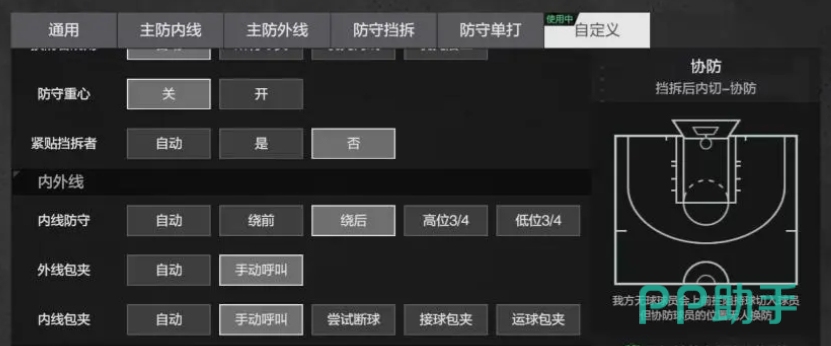 对于其他类型的挡拆,同样可以采用绕后防守的方式,让挡拆者难以顺利地接到球或者无法舒服地进行下一步动作,而对于无球挡拆的情况,及时换防是关键,通过与队友之间的默契配合,迅速交换防守对象,确保每个进攻球员都在严密的防守之下,为了提高防守的效率和准确性,可以将规则设置为自动防守换防者,这样球员们能够更加专注于自己的防守任务。
