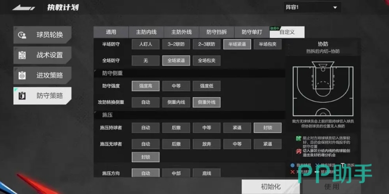 此时内线球员要做好充分的准备,利用自己的身体优势和防守位置感,对进入内线的对手进行强硬的封堵,让他们在内线难以施展拳脚,对于那些没有持球的对手队友,通过积极的移动和干扰,阻止他们获得空位接球的机会,最后开启自动施压功能,让整个防守体系更加紧凑和具有攻击性。