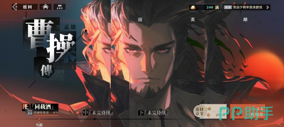 主线的剧情当中目前是放出了关于曹操传的剧情,而主线任务当中玩家的进度直接决定了可接取的任务内容,曹操传其架构精巧地分为上、中、下三个篇章,每个篇章下又细分多个章节,玩家需成功通关前一章节,方能解锁后续剧情,而相应的任务奖励方面也是根据大家推图的速度给出的奖励。