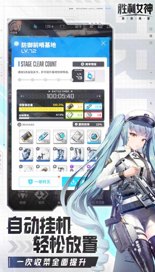 要说胜利女神新的希望这款游戏,它作为二次元风格的第三人称射击放置类型的游戏,游戏的背景设定在未来的世界,这时候地球已经被外星机械生命体入侵,人类直接逃到了地下世界。此时玩家将会成为指挥官,带领众多的美少女战士,组成了战队,抵抗外来的入侵,夺回地球。