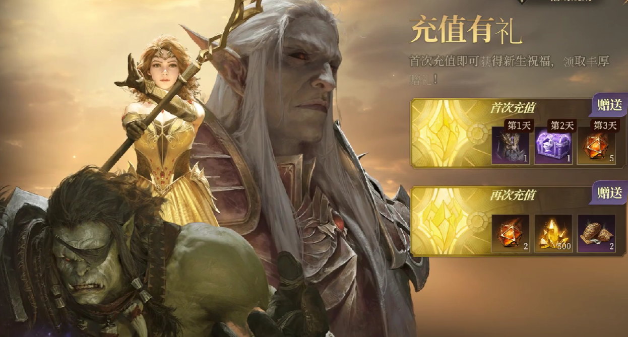 当玩家完成了首次充值之后,会连续三天给玩家赠送礼物,其中就包含紫色品质的英雄角色,以及神石礼包。