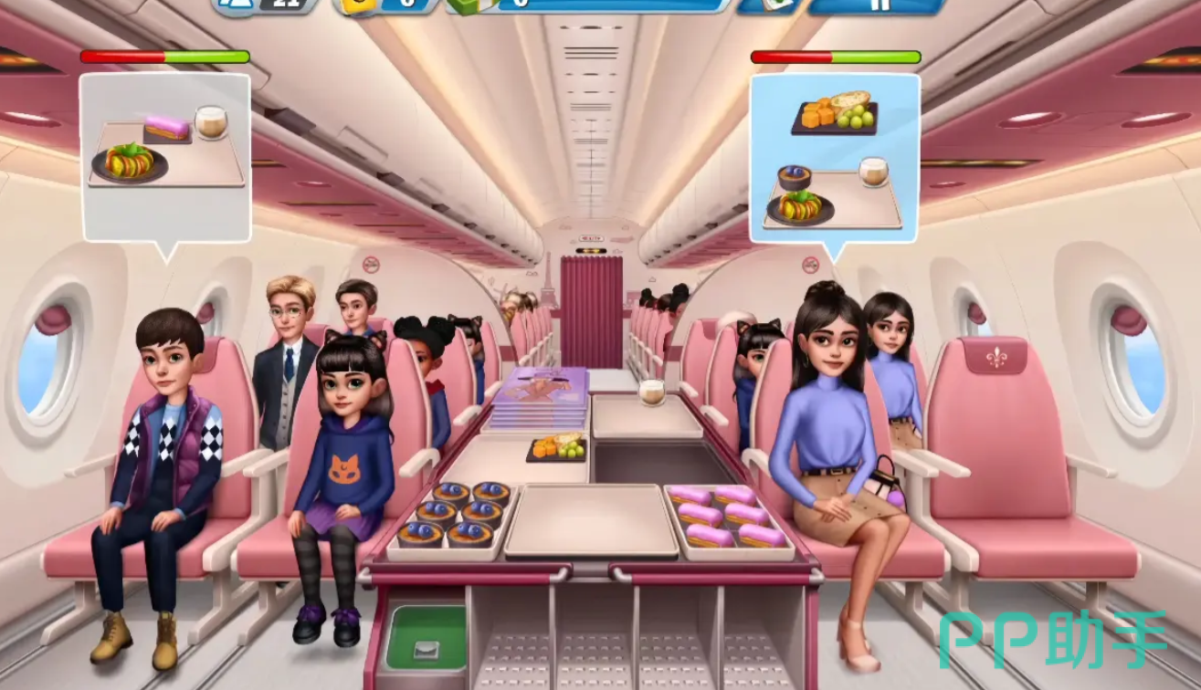 作为一款非常考验玩家手速的休闲游戏,它设置了上千个不同类型的关卡,玩家需要化身成为空姐,在飞机舱上配餐,并且满足各个乘客的需求,在完成了所有的需求之后,玩家才能够获取关卡的通关。