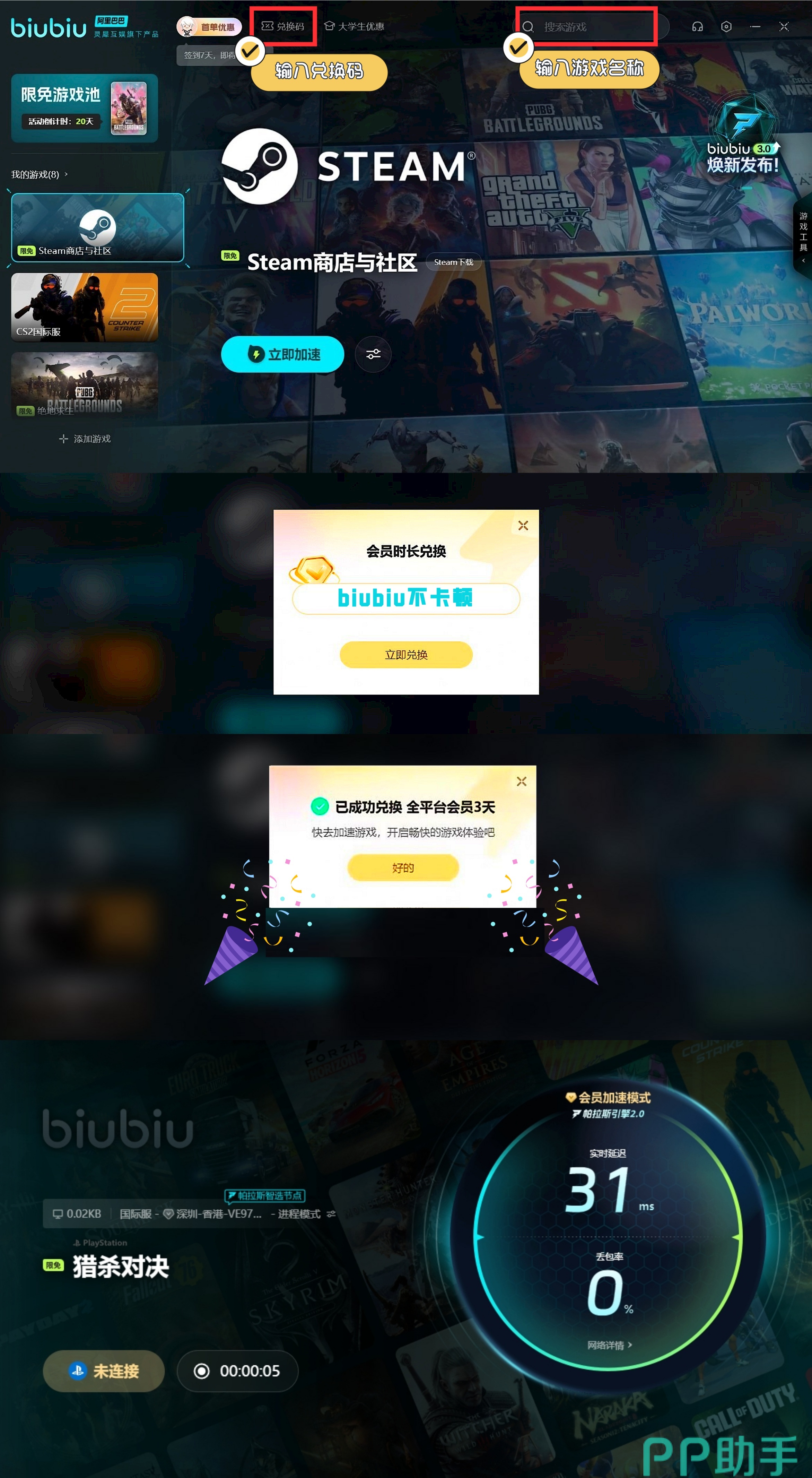 而各位若是想要去解锁更多加速机会,到时还可主动利用【biubiu不卡顿】,这样所有小伙伴都能在兑换界面来顺利的领取到72h加速时长,让自身的游戏体验更好,即便是长时间游戏,也不用担心会有要求充值等问题的发生。