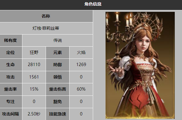 菲莉丝蒂是火系中的狂野核心输出,能够无视敌人的护盾直接对敌人造成高额伤害,和其他的狂野系互相搭配还可以叠加出额外的伤害,提升自己团队的整体输出。