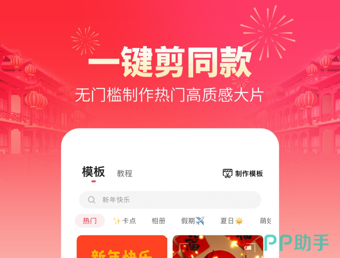 不管你的剪辑水平高低都能在这里得到你想要的服务,基础简单的视频剪辑均可实现,许多素材都是现成直接点击套用,剪辑功能虽然简单但其实相当全面,只需将拍摄的素材导入软件,然后选择合适的模板,即可快速生成一个精美的视频。同时,它还支持对视频进行裁剪、拼接、添加滤镜等操作,让你的视频更加个性化。