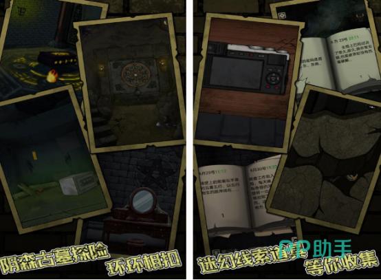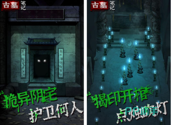在游戏中的玩家,将会置身于充满着诡异的古墓中,由于古墓身荒山环境下,所以在整个探险的时候,你也会看到充满着阴森有黑暗的环境,还有诸多的神秘故事,通过环环相扣,让你特别的想要了解里面所涵盖的秘密,通过收集线索道具等方式,帮助你解开游戏中所具备的机关谜题。更融入了中国古代神秘的八卦阵等内容,再加上里面所具备的动听音乐,带给大家不一样的游戏体验。