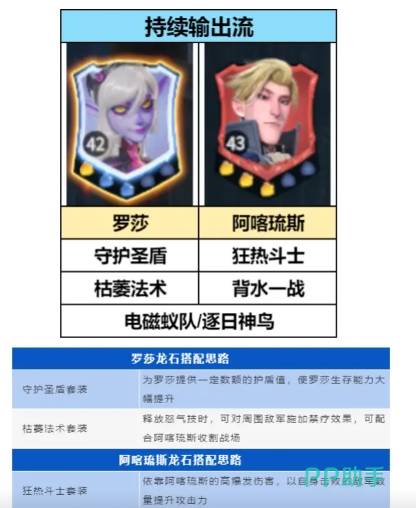 持续输出流:可以选择罗莎,还有阿喀琉斯。这两个英雄都拥有着比较出色的优势。罗莎的守护圣盾就可以拥有足够的护盾值,能有效提升生存的能力。在释放怒气技能时,就可以给周围的敌军带来一个枯萎的效果。阿喀琉斯可以选择狂热斗士,能持续的提高爆发伤害,还可以提升攻击力。