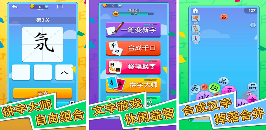 这款神奇的汉字,不仅在无WiFi的情况下可以体验,而且将每一个字拆解成多个部分,让你获得拼字大师的头衔,休闲娱乐的玩法,如一笔变新字、合成千口、移笔换字等等,娱乐模式更加丰富多样,在每一次互动的过程中,让小朋友们开动脑筋,作品中囊括了2000多基本汉字,寓教于乐氛围拉满。