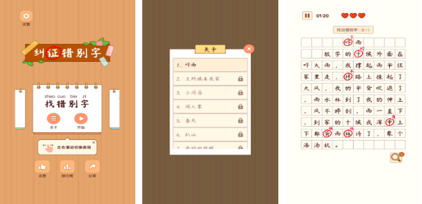 小朋友老是出现错别字,那就来试试这款汉字找茬王,不仅拥有好玩、有趣的纠正错别字的玩法,而且在游戏中,还设立了100多个关卡,能够让小朋友在线完成有趣互动,拟真的纸质画面,简单的操作模式,让更多小朋友可以丝滑体验,别出心裁的辅助道具,更是给玩家们带来的惊喜。