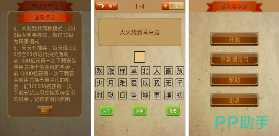 一年级猜字谜游戏的推荐内容,就暂时分享这么多。通过游戏开启更好玩的寓教于乐模式,快通过豌豆荚APP下载吧,带着自家的小朋友们赶紧体验起来,感受中国汉字的魅力。