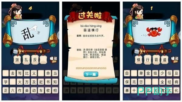 它是一款趣味益智休闲小游戏,其中囊括了丰富的成语小知识,令玩家们可以在娱乐玩耍的过程中,汲取源源不断的传统文化常识。《乐游斗成语》内丰富的关卡下,会有各种各样的成语知识供大家展开猜题,下方的汉字组也是对大家的提示,选择合适的文字填入其中,促使每一个成语都完整,便是游戏对大家的考验。
