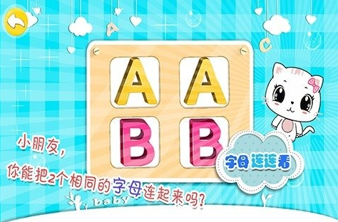 这款手游是三岁以下小宝宝专用,帮助孩子们进行简单字母的学习和认知。游戏的画面卡通而且可爱,每一个字母和小动物都是经过严格筛选的萌版设计,用来吸引小宝宝的注意力。可爱的字母小气球以及绿色大森林里多彩的字母表,都可以对小宝宝进行娱乐化的简单教育。游戏还贴心设计手游吉祥物演唱的英文字母歌,优美的旋律和动听的声音会极大激发小朋友的体验欲望。