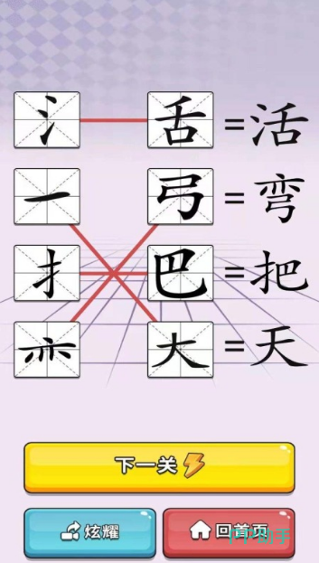 这款专门用来提升汉字和成语能力的小游戏,不仅包含了清新简洁的屏幕界面,还设置了极其简略的玩法规则,对于儿童和家长汉字互动十分友好。游戏包含多种汉字娱乐关卡,孩子们可以使用加减部首笔画的方式,让汉字变为其他汉字,极大地加深对于相似汉字的辨识度。游戏库中设置的汉字都是生活在或者学习中极易混淆的汉字,因此对学生而言更需要加深记忆。