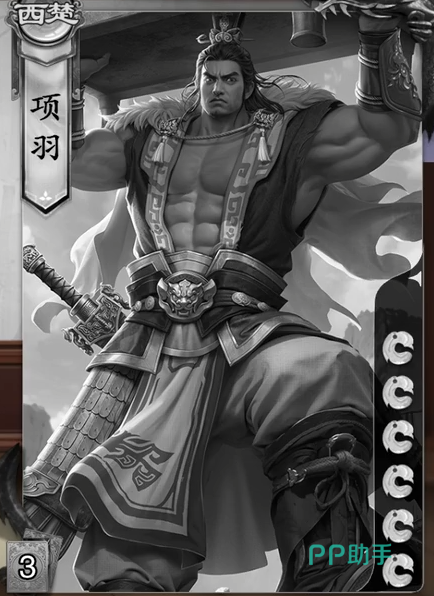这个角色是需要玩家们在赛季之中达到大将这个段位之后可以获取到的角色。这个角色的技能一共有两个,第一个是破釜沉舟。这个是项羽的专属限定技能。在释放之后会销毁我的所有牌,然后摸3张牌,接下来本局的游戏之中所有伤害将会增加1。第二个技能则是霸王,此技能是当玩家在进行阵前对决的时候会将对决的效果改为对目标造成1点伤害,你每造成3次伤害便会添加一张阵前对决到自己的手牌之中。项羽的两个技能都是属于进攻性很强的技能,总体来说很强。