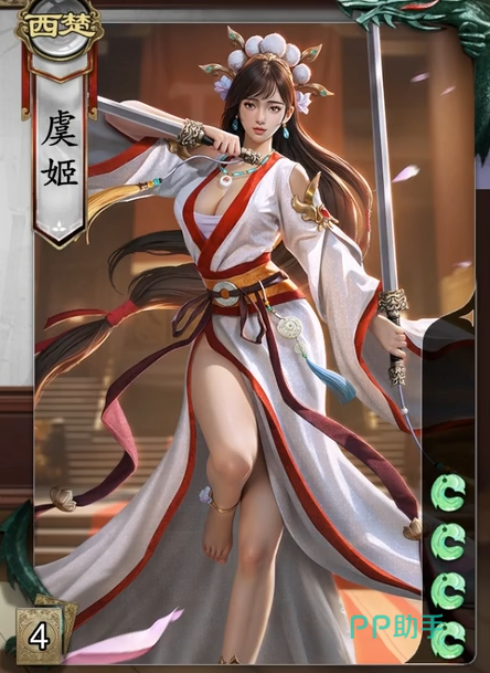 基本上玩家们提到项羽就会提到虞姬。这位角色是玩家们在前期便可以获取到角色之一。角色本身的体力比较低,只有4点。虞姬的第一个技能是美人。这个技能是登场的时候发动,玩家可以选择一名男性角色,替你承担所有的伤害。当其受到了致命伤的时候,改为你失去等量的体力值。然后为其回复1点生命值。这个技能最好是自己敌对阵营的角色来使用是最好的。虞姬的2技能是霸王别姬,这个技能是阵亡的时候发动,在阵亡的时候可以让场上一名男性武将马上进入他的回合。