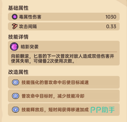 夜幕锋刃的核心技能名为暗影突袭,允许玩家储存两次使用机会。每次使用玩家向前翻滚实现快速位移,让敌人难以捉摸你的轨迹,所以往往能发挥出奇效。使用暗影突袭后的下次普攻伤害还能翻倍,能使敌人短暂失明,在敌人视线受阻时则是你进攻的好时机,因此夜幕锋刃在战斗中拥有极高的机动性。