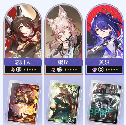之后的复刻池有三个,这三个池子分别给到了忘归人、椒丘和黄泉这三位角色,这三位角色的话基本都属于之前的高人气角色了,大家自行考虑抽取,在看完这上半部分的卡池以后,接下来就可以下半卡池了。