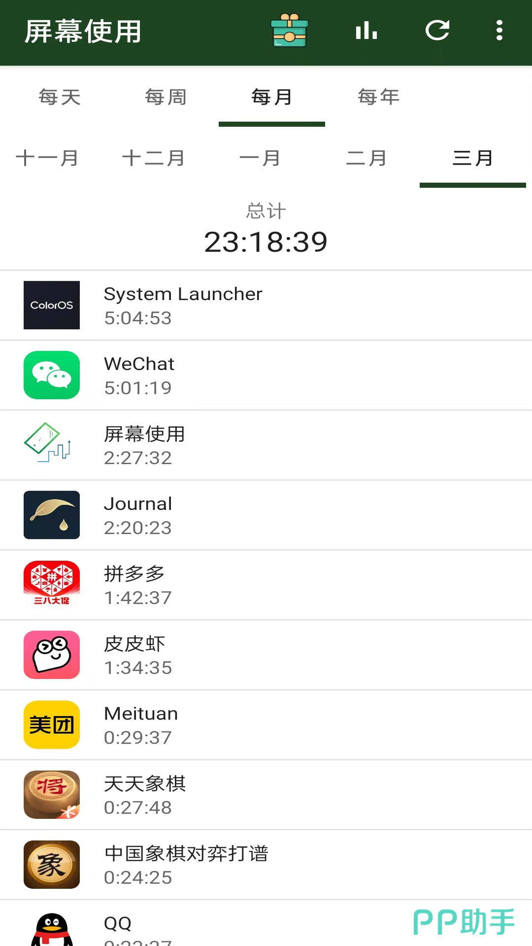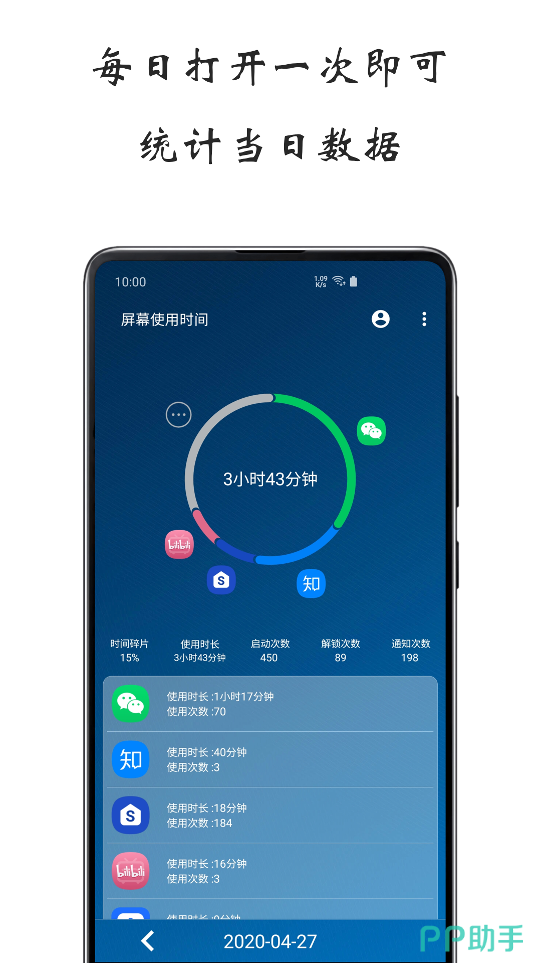 顾名思义,帮助大家快速知道自己每天的屏幕使用情况,同时会从多个不同的维度来清晰的展示,比如某个软件的使用时间,以及日常的各个应用时间统计等都是可以的。