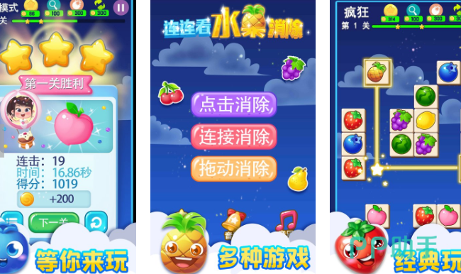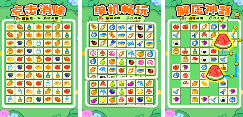 连连看水果消除游戏界面布满各种色彩鲜艳、形象逼真的水果图标,玩家的核心任务是找出两个相同的水果,通过不超过两条直线将它们连接起来实现消除,棋盘会设置各类障碍增加难度,可能有无法穿越的石块、被锁住的水果或者被藤蔓缠绕的水果,这些障碍改变了水果的分布格局,要求玩家仔细观察规划连线路径,避开障碍,找出可消除的水果组合。
