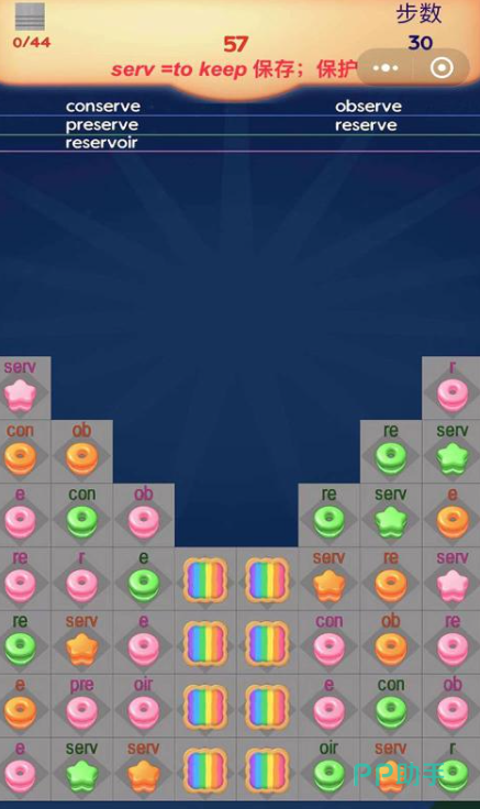 游戏玩法很特别——屏幕上那些彩色方块不再是普通图案,每个方块上都印着英语词根或字母。玩家需要动动脑筋,把能组成完整单词的方块连在一起消除。 每成功拼出一个单词,不仅能得分通关,还能学到新词汇。游戏会贴心地提示可能的单词组合,让玩家在轻松消除的过程中不知不觉积累英语知识。