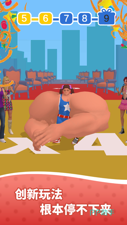 《肌肉我最强》这一款跑酷结合战斗巧夺天工打造的游戏类型,游戏内我们需要全程举着杠铃进行跑酷,运用杠铃去击打敌人,随着跑酷场景的变动,玩家需不断的拾取更多的杠铃进行增重,从而让双臂真的更加巨大,针对人物还打造了令人瞠目结舌的跑酷技能,游戏还设计了格斗俱乐部系统,玩家可以挑选各类猛男对手进行搏击。