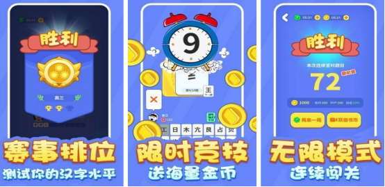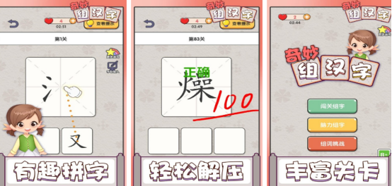 足够优秀的益智休闲游戏,将展开独特的汉字魔法大挑战,需要寻找到适合汉字的偏旁部位,将它们全部串联起来,组成完整的汉字。加入社交互动模式有排位赛事,挑战更多的关卡,获得极高的排名。另外也有实时竞技玩法,无线模式连续闯关连续成功挑战将获得众多奖励。