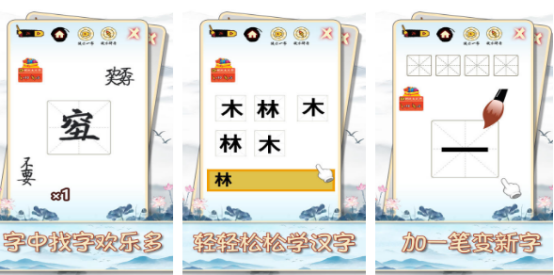 提到这样的游戏,小伙伴们第一时间想到的就是加一笔变新字或者改变偏旁变新字,此游戏中融入多种特色玩法与相关内容。玩家可通过添加笔画或者移动偏旁的方式变成全新的汉字。有较多极其丰富的关卡,等你来体验,在这里也将感受百变汉字的无限魅力。不仅有极高趣味性,也能巩固汉字知识,这样的特色游戏适合不同年龄段。